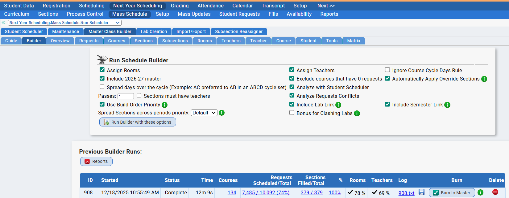 - Master Schedule Builder