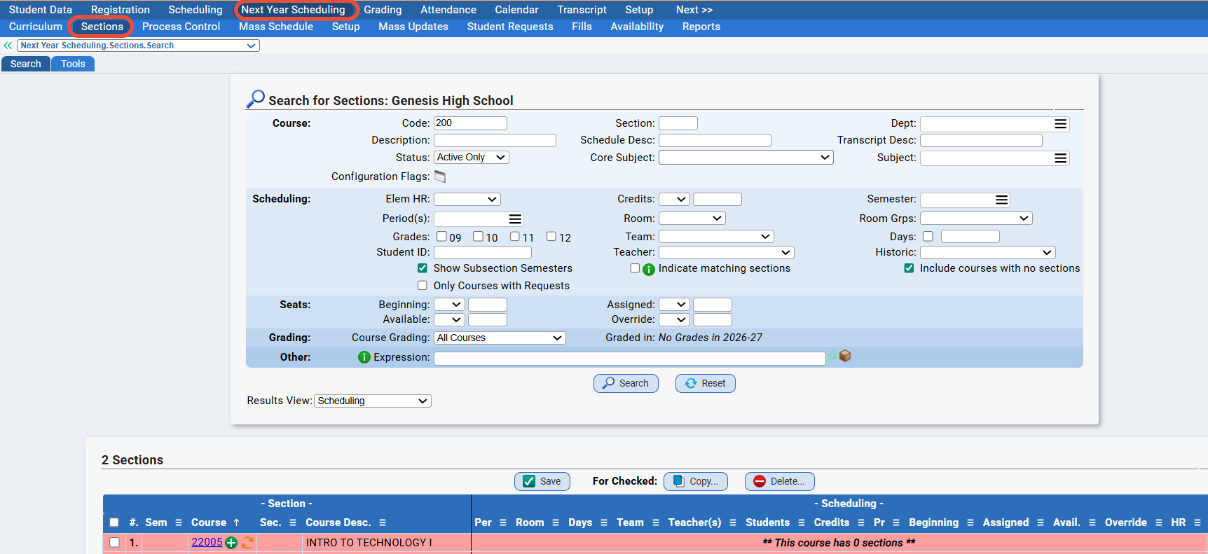 - Add/Delete courses and make any necessary changes to your next year sections via Next Year Scheduling>Sections