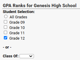 - For example, if you are running your CUM GPA for 12th graders, select just 12th grade for this report.
