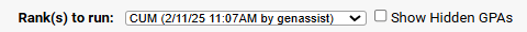 - Select the same GPA code in the “Rank(s) to run” dropdown.