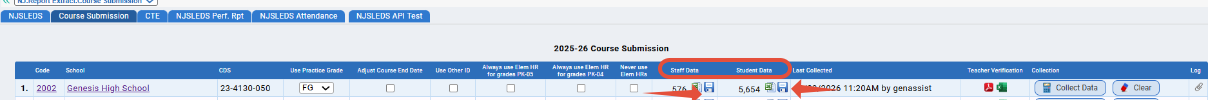 This is located on the NJ > NJSLEDS > Course Submission screen. Start by clicking Collect Data for each school. The system will generate a report, and this only takes a few moments: