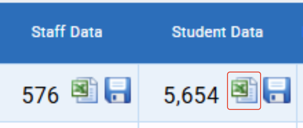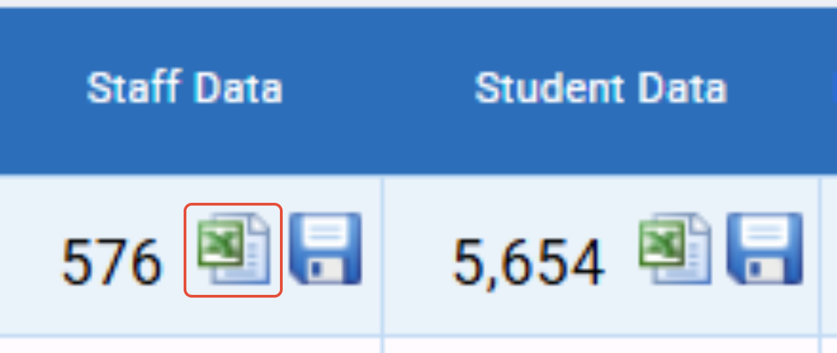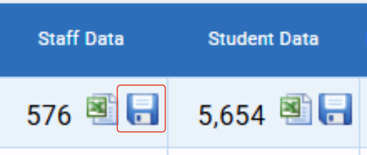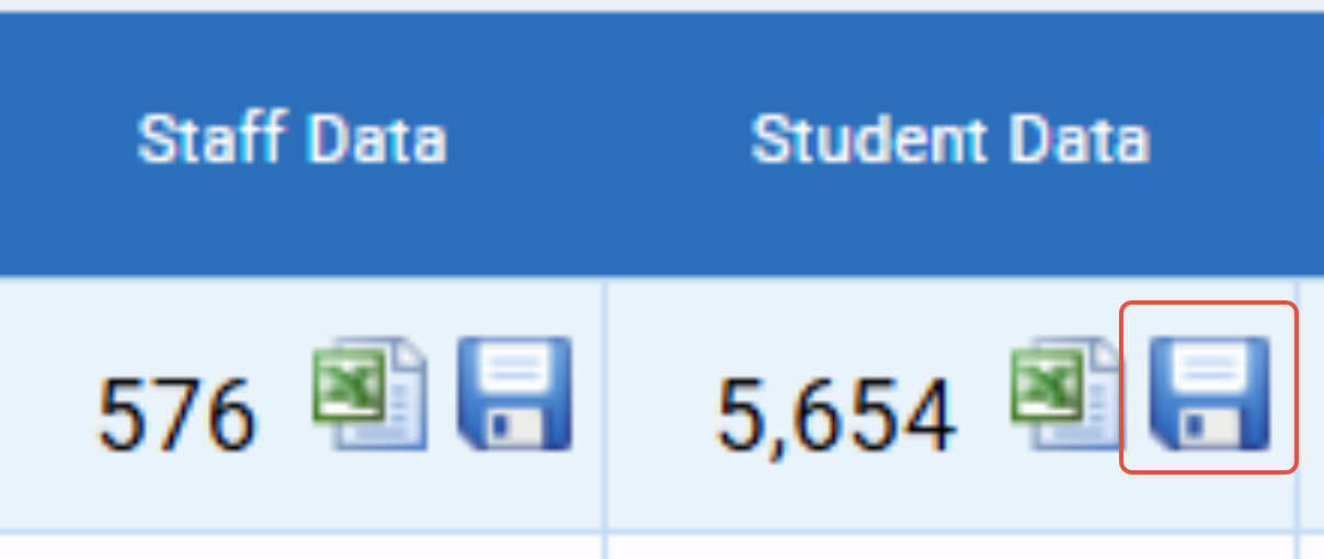 To download the files, locate each of the blue floppy disk icons; 1 for the staff data and 1 for student data: