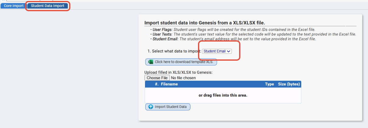 NEW: We have added a new screen: Core>Import>Student Data Import. This screen currently only has a few data fields available but it includes: "Student Email Address."