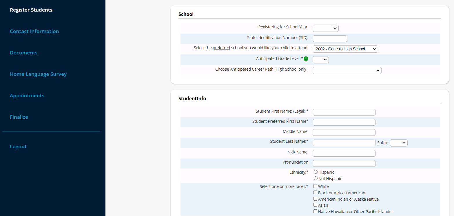 This is optional depending on the district’s set up. You may be brought to the Home Language Survey to fill out for the student.