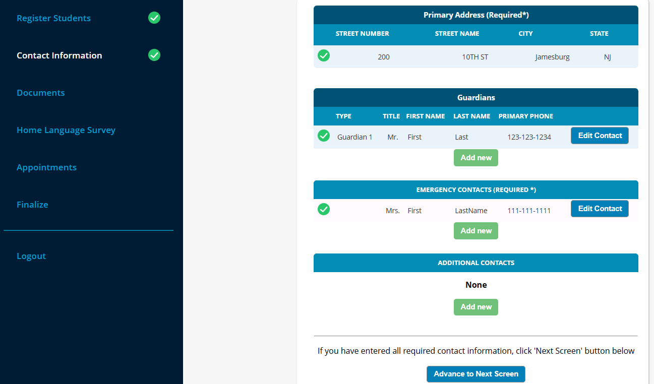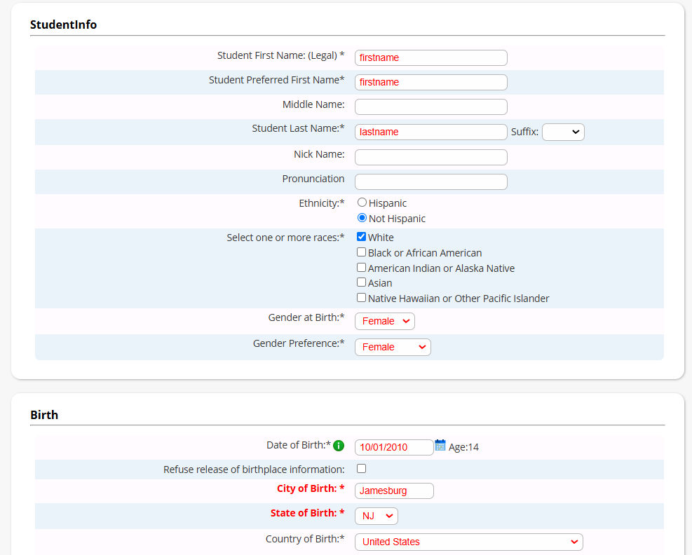 Note: depending on the required fields set by the district, the screens may look slightly different.