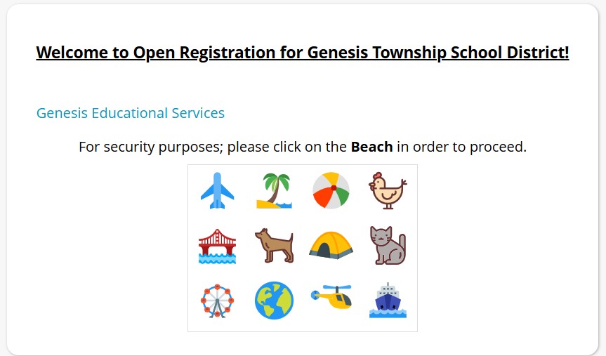 Click on the captcha/icon referenced on the screen to start.
