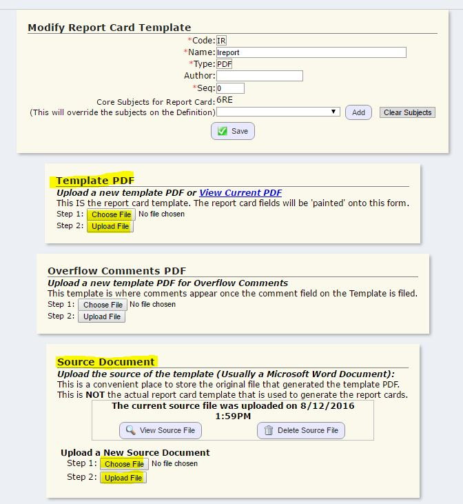 - Check the RC template and definition to make sure the Core Subjects are added and in the proper order. If Core Subject is listed on BOTH definition and template, the template's Core Subjects trump definitions.