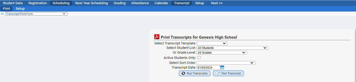 • Grading > Grading Process, Grading > Report Cards, Grading > Honor Rolls, Grading > GPA/Rank, Grading > Setup > Comments, Grading > Setup > Valid Grades > Min/Max, Grading > Setup > Att. Credit Loss