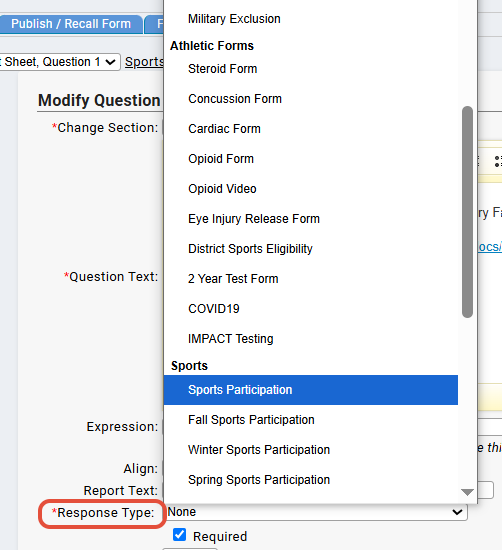 - What are our options when creating a FORM to gather Athletics/Sports information from students? What info can we gather?