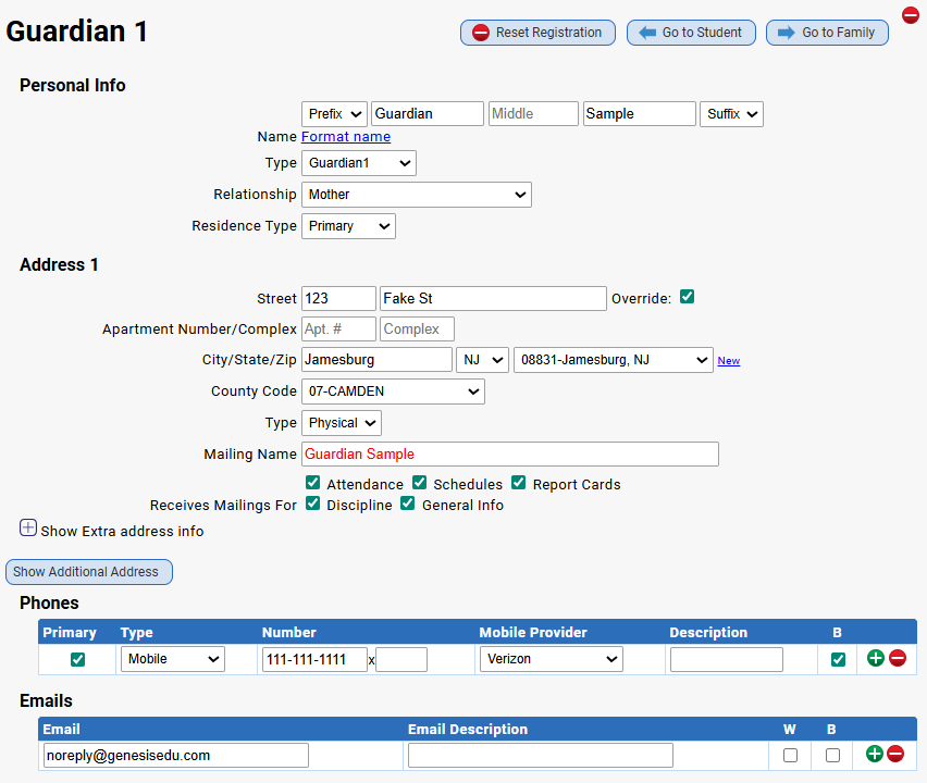 - The Guardian 1 Contact record – This is the Contact record for the primary guardian parent. Guardian 1 usually identifies the mother. The key criterion for Guardian 1 is that they must live in the same residence as the student themselves.