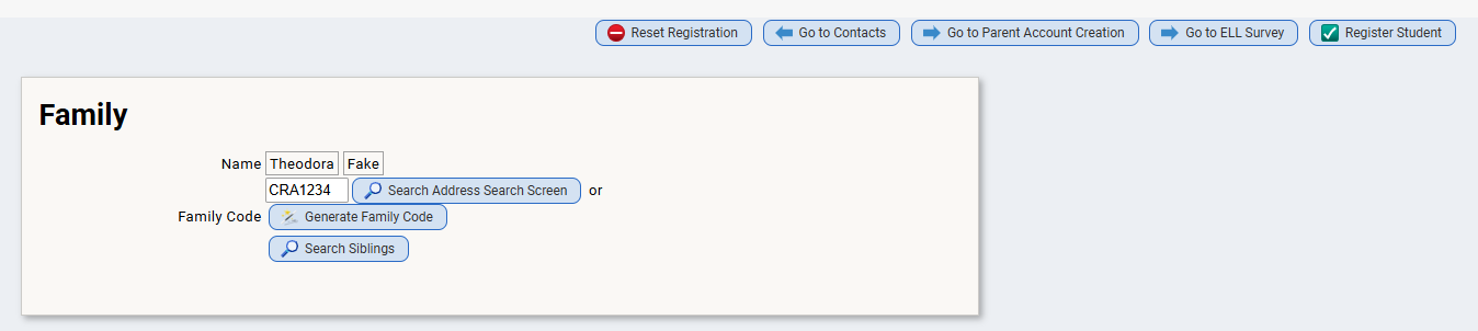 The Family Screen allows you to create a new Family Code for this student and allows you to specify that the student has custody issues.