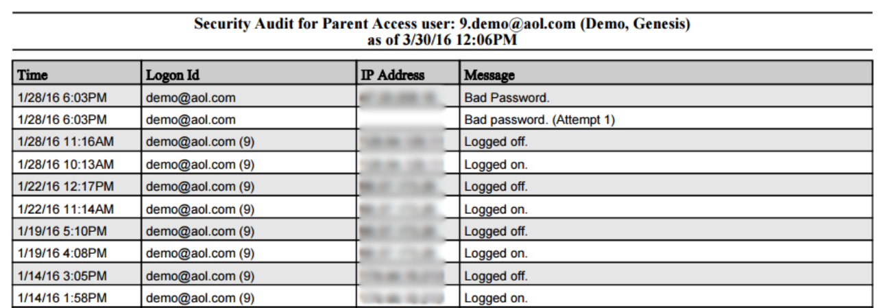 - Auditing Parent Portal Accounts