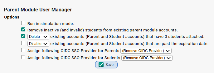 - Remove inactive (and invalid) students from existing parent module accounts.