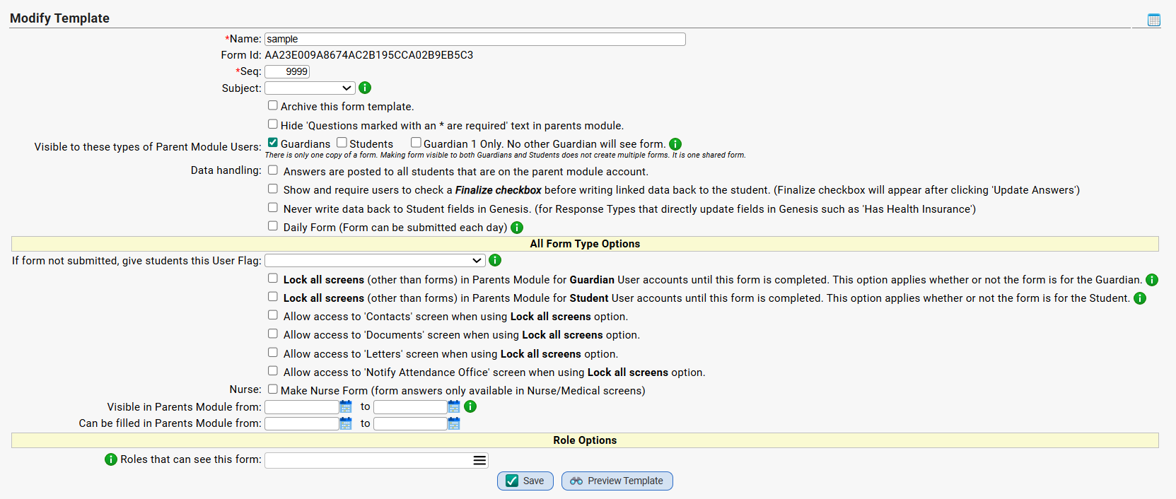 Parent Form Template Options