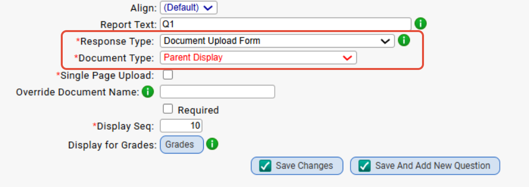 - (If your form is set to lock tabs in Parents Portal make sure your form also has "Allow access to 'Documents' screen when using Lock all screens option." checked if you add this type of question.)
