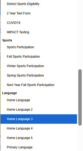 - Military Exclusion - Yes/No: If parent selects 'Yes' then the student's Military Exclusion box will be flagged.