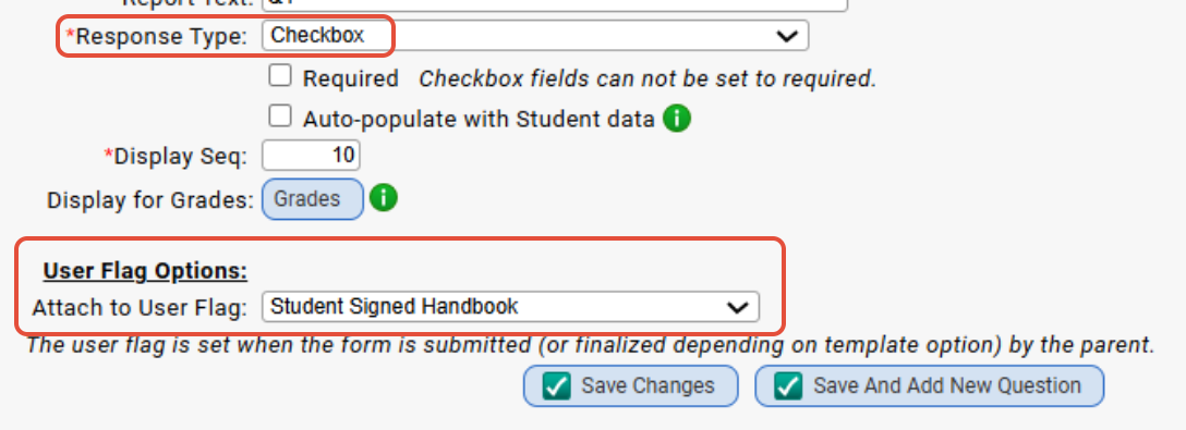 - Select the user flag that you would like to tie the parent response to and click 'save changes'