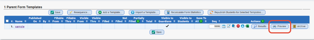 - You can also preview what the form looks like in Parents Module by clicking the 'Preview' button to the right of the corresponding form you want to see