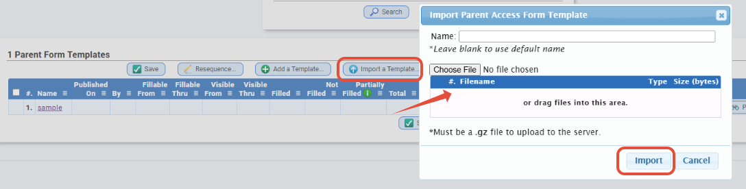 - You can import any previously exported Genesis System form template file that was exported as a .gz file