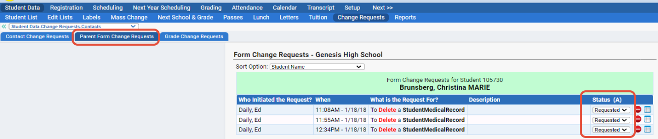 Parent Form Change Requests