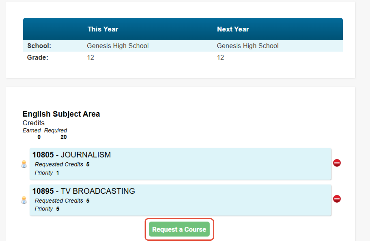 If parents see a "Request a Course" button for a subject, they can make the request: