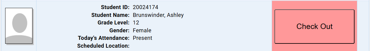 In the first case, a fully configured future event, the student will see a "Check-Out" button if they scan "in" for the Event on the scheduled date.