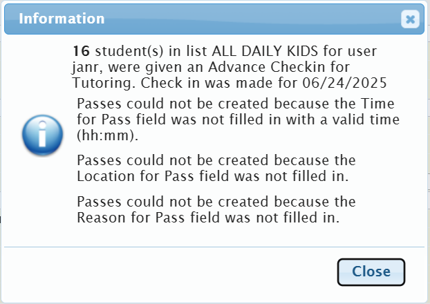 - Select the student list or student's name or id: identify which students are being set to checkin later.