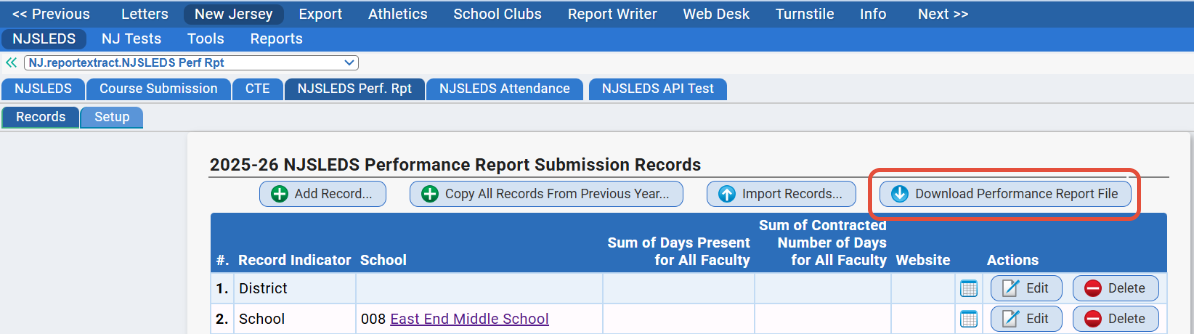After records are in place and you have entered the information, you can generate a file by clicking the "Download Performance Report File" button: