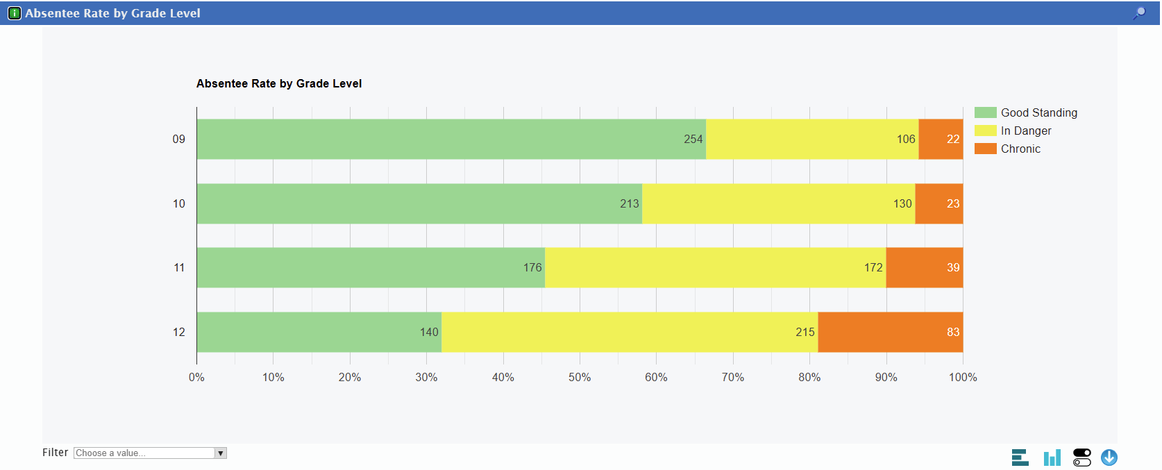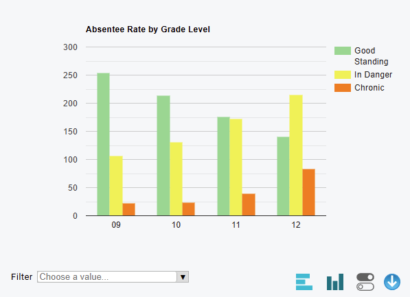 - The filter option allows you to display only the items you want to see, in the case of the chart above you can select Good Standing, In Danger, or Chronic to show