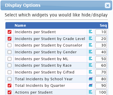 - Show Widgets in the top right to hide/display widgets you would like to see and change the sequence they appear on the dashboard.